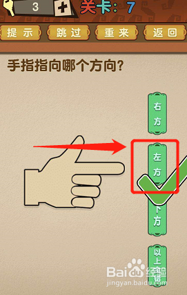 第7关:手指指标的目的哪个偏向;不消想太多,手指指标的目的了【左方】两个字