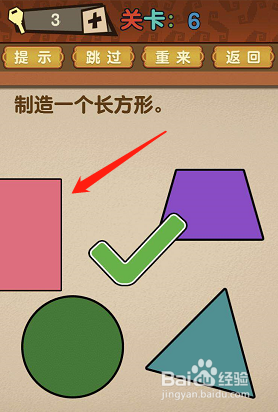 第6关:制造一个长方形;将红色的正方形移动到页面边上,遮住一半,正方形就酿成了长方形了。