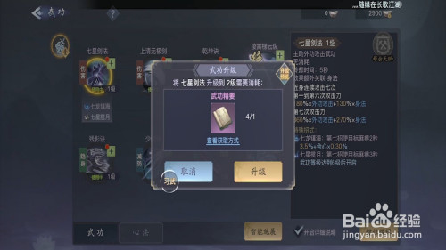 4、我们选择并点击武功,接在选摘要进级的武功。