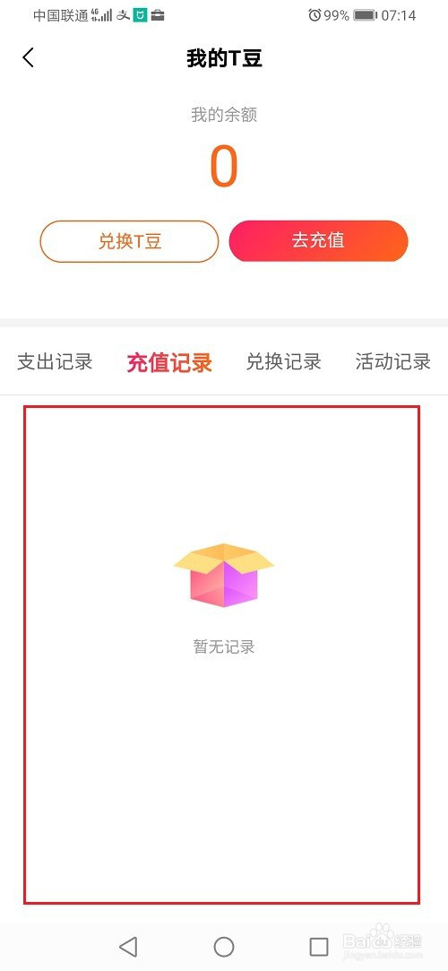 第四步进去我的T豆之后,点击充值记实,如下图所示: