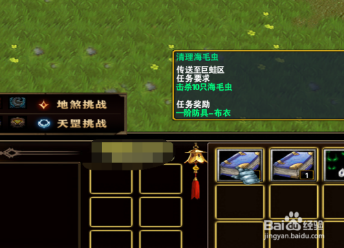 这里第一个使命是刷一些怪,而奖励是获得一个防御装备。