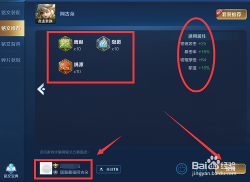 然后找到国服最强阿古朵,您会看到打野铭文别离是鹰眼,隐匿,祸源。