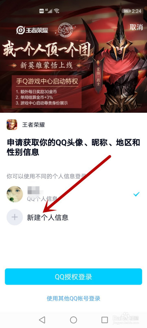 接着就会跳转到授权的登录界面,这时辰点击【新建小我信息】。