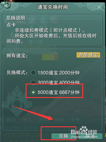 在弹出框中点击【通宝兑换时候】按钮。