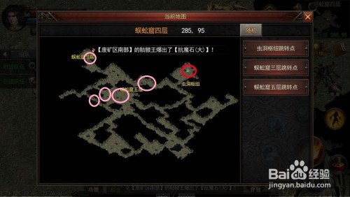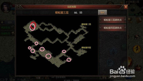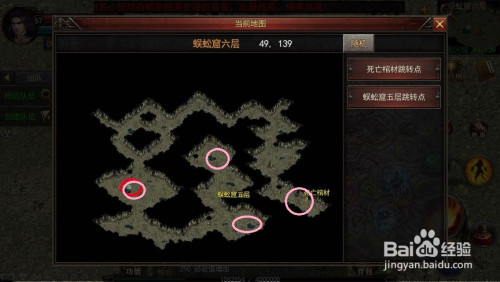 蜈蚣洞一层-画圈的位置就是触龙邪神的刷新位置。(2只,一固定一随机,红色为固定刷新点,粉色为我履历过的刷新点,有可能刷新处,不限于此)