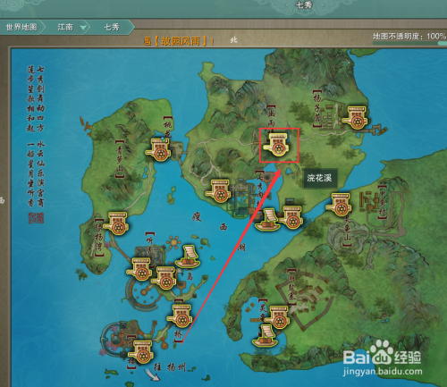 在打开的七秀地图中,点击【浣花溪】神行点。
