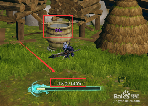 找到使命物品【水缸】,按F交互吊水3次。
