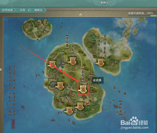 在打开的鲲鹏岛地图中,点击【会武居】神行点。