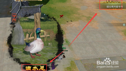 走到马路对面的【绿头鸭】触发NPC处,右键与它对话,点击【把一桶水倒到它青的发绿的头】按钮,就有几率触发奇遇啦~