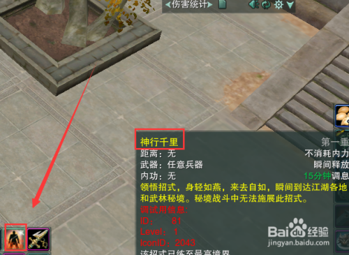 进入游戏后,点击技术栏中的【神行千里】技术。