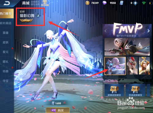 然后点击右侧下方第一个是貂蝉的猫影幻舞FMVP皮肤。