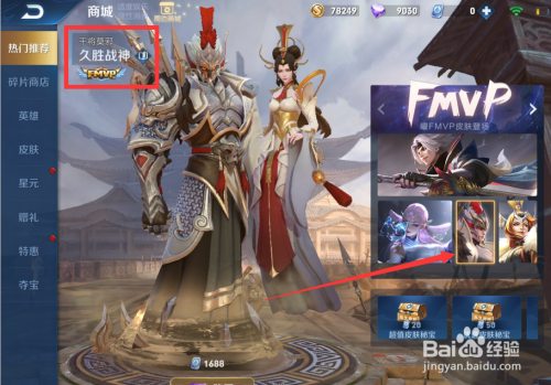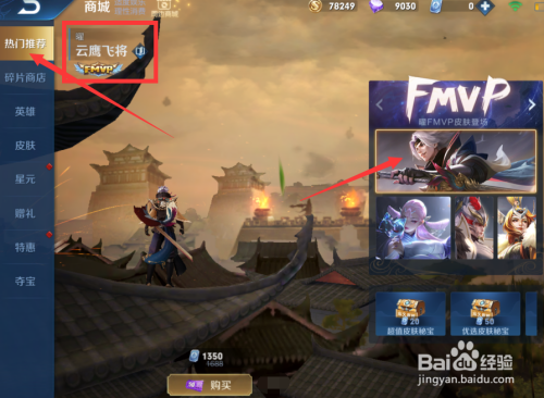 然后在热点保举里可以看到第一款最新出的曜的云鹰飞将FMVP皮肤。
