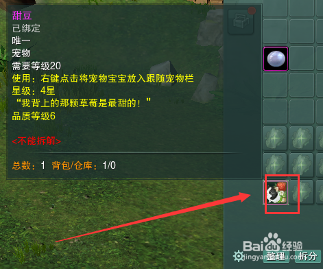 进入游戏后,按B打开背包,右键点击刚获得的【甜豆】。