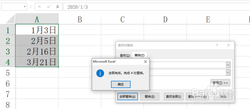 成果如图所示,即将Excel工作表中的1.3样式改当作1月3日日期格局
