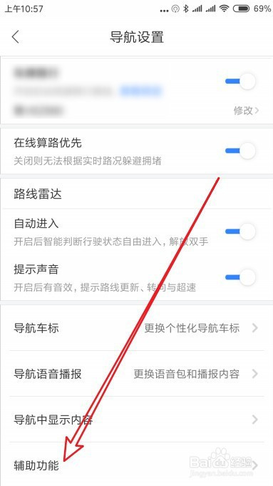 接着在打开导航设置页面,点击辅助功能的设置项。