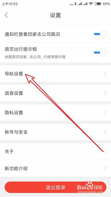 这时就会打开百度地图的设置界面,点击导航设置的设置项。
