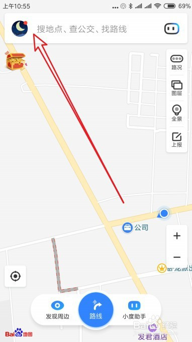在手机上打开百度地图,点击左上角的小我中间按钮。