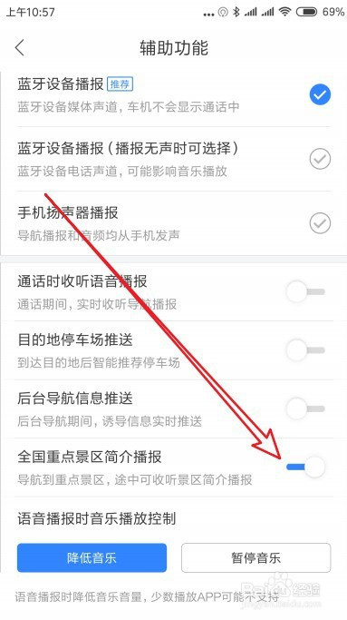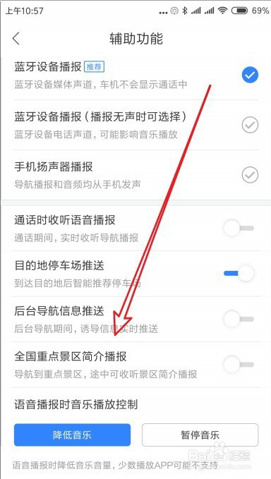 这时会打开辅助功能页面,找到全国重点景区简介播报的设置项。