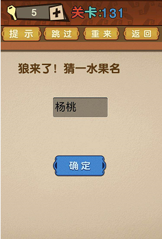 最强的大脑第131关:狼来了!猜一生果名。谜底【杨桃】。狼来了,羊逃。