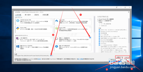 接着,勾选下图中的“利用C++的桌面开辟”(右边的不管,默认就好);若要更改软件的默认安装位置,请点击界面下方的“更改”。若要选择安装体例,请点击界面右下方的“∨”。同时右下方(图中标红方框)会显示软件安装的大小。最后,点击界面右下角的“安装”按钮,起头安装。