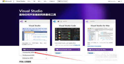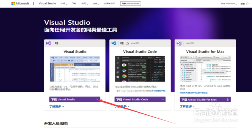 接着,单击页面中的”下载visual studio“右边的“∨”图标。