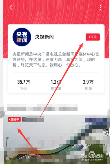 4、点击搜刮成果的【央视新闻】发布视频进入。