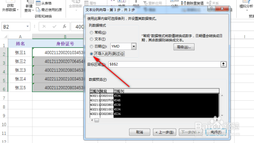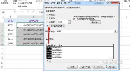 选中出生日期的前一部门,并设置为“不导入此列”,再选中出生日期后一部门,也设置为“不导入此列”,具体如图所示: