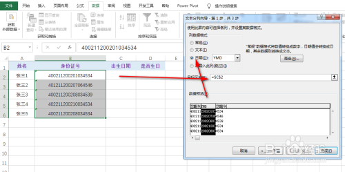 接着,选中出生日期,设置为日期格局,并设置方针区域为现实位置,最后点击“完当作”,具体如图所示: