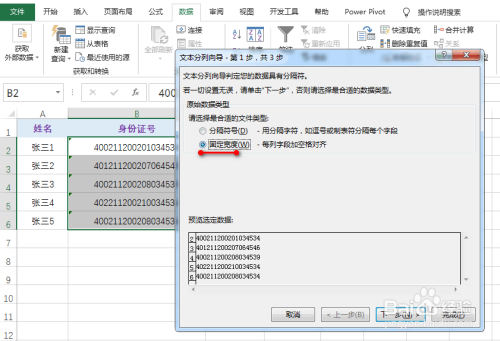 在呈现的弹出框中,选中固定宽度,然后再点击“下一步”,具体如图所示: