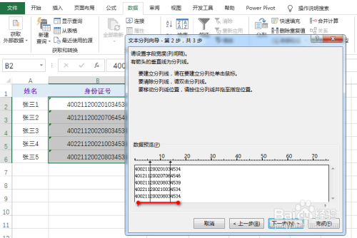在新的界面中,利用鼠标划分出出生日期,然后点击“下一步”,具体如图所示: