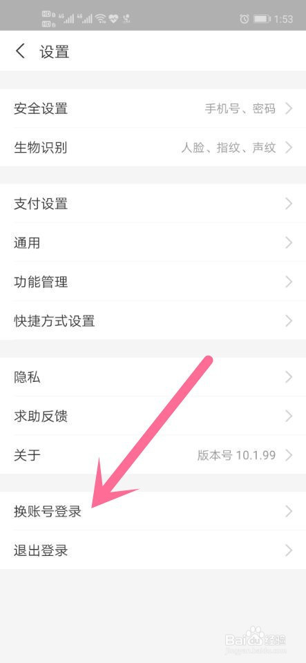 进入设置后,点击下方的换帐号登录。