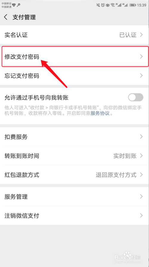 在【支付办理】页面中,点击【点窜支付密码】,如下图所示。