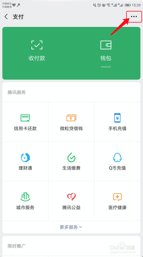 在【支付】页面中,点击右上角的【···】,如下图所示。