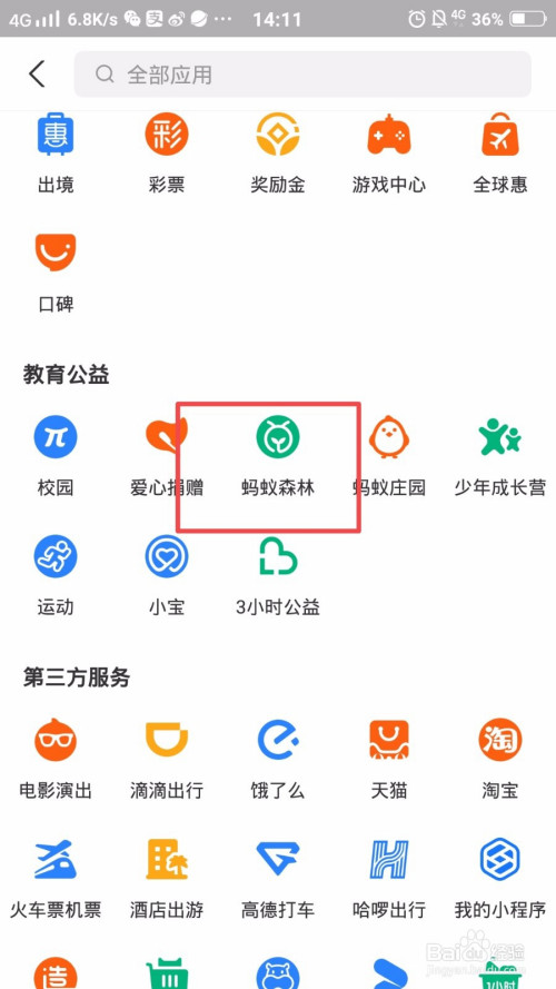 然后点击【蚂蚁丛林】;