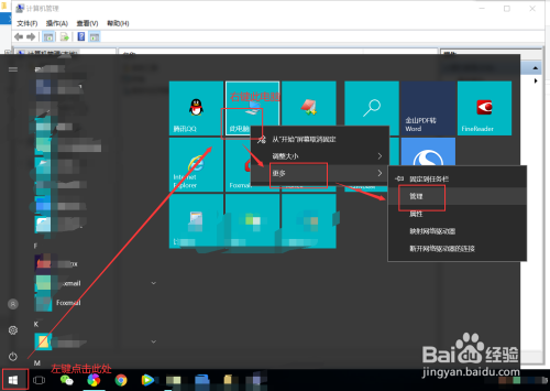 首先,我们打开电脑,鼠标左键点击左下角起头功能,找到“此电脑”图标,然后点击鼠标右键,进入办理页面,或者桌面直接鼠标右键点击“此电脑”,进入办理页面即可;