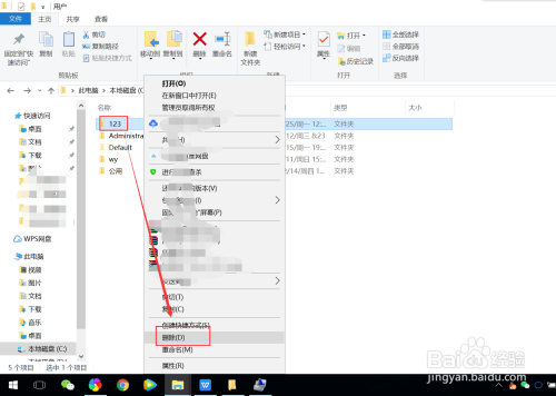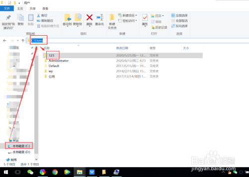 4、切换到当地磁盘C盘user文件夹下,删除用户账号残留文件即可。