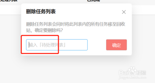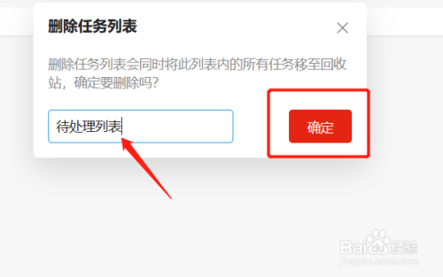 在弹出的对话框中输入要删除的使命列表名称,需要注重的是,这里的名称必然要输入准确,不然删除按钮置灰