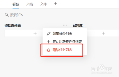 进入空间首页后,可以看到看板页面,点击一个使命列表右侧的省略号