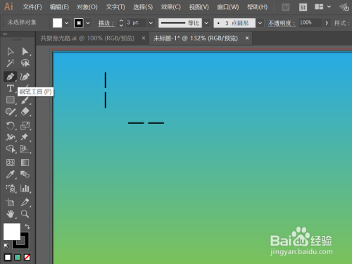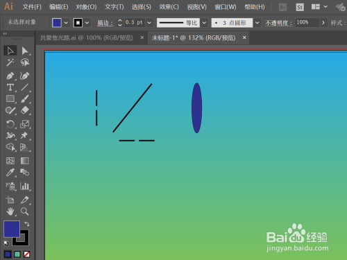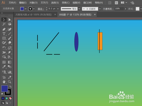 先用钢笔东西绘制两个短的直线段,中心留一小距离空地,编组,扭转复制一个,作为光源的收支口;