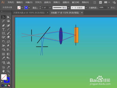 最后,钢笔东西绘制一个折线段,作为箭头添加到每个路径上作为光源的传布偏向,这样一个简略单纯的光路图就绘制好了!
