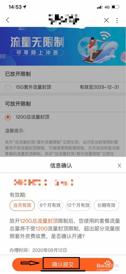 点击选中【120G总流量封顶】