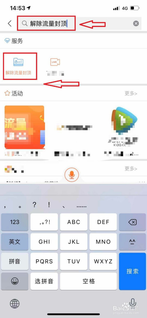1)在搜索框中输入:【解除流量封顶】