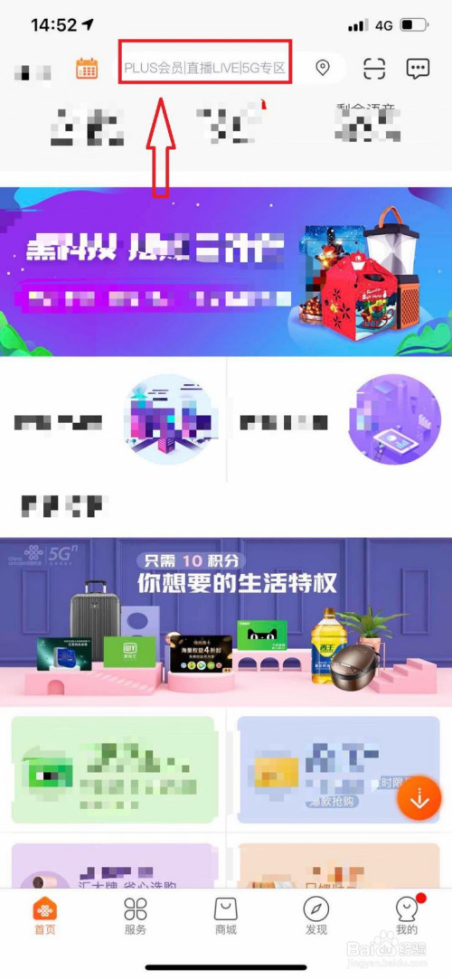进入手机营业厅的本家儿页面后,点击【顶部的搜索框】
