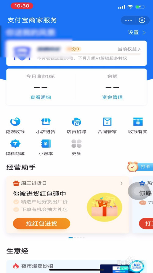 随后点击我的页面里的商家办事一栏。
