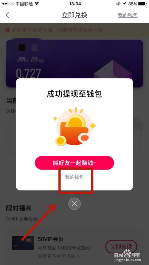 当作功将神奇矿石提现至钱包后,点击我的钱包选项。