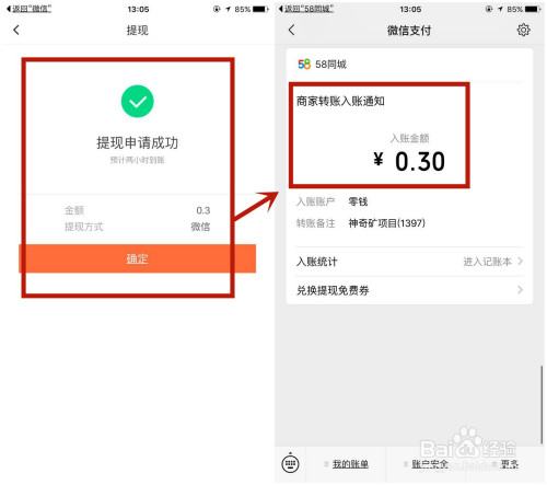 当作功提现后,点击确定,返回微信看,就可以发现资金已入账。