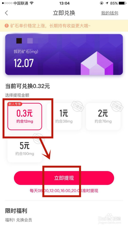 4.当作功将神奇矿石提现至钱包后点击我的钱包,再点击提现进入当即提现。