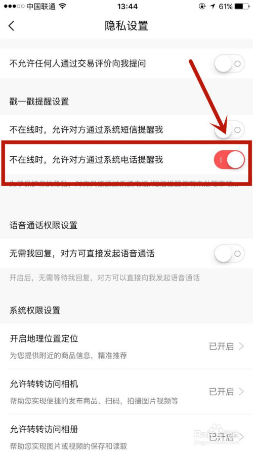3.将不在线时 许可对方经由过程系统德律风提醒我后的按钮点击打开,即可。