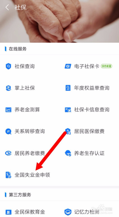 点击“全国掉业金申领”选择“掉业保险待遇申领”