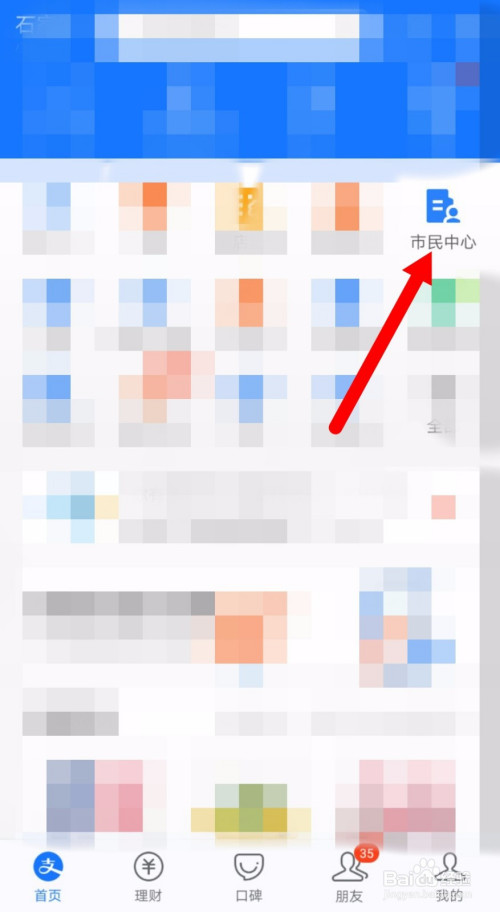 打开支付宝,点击“市平易近中间”